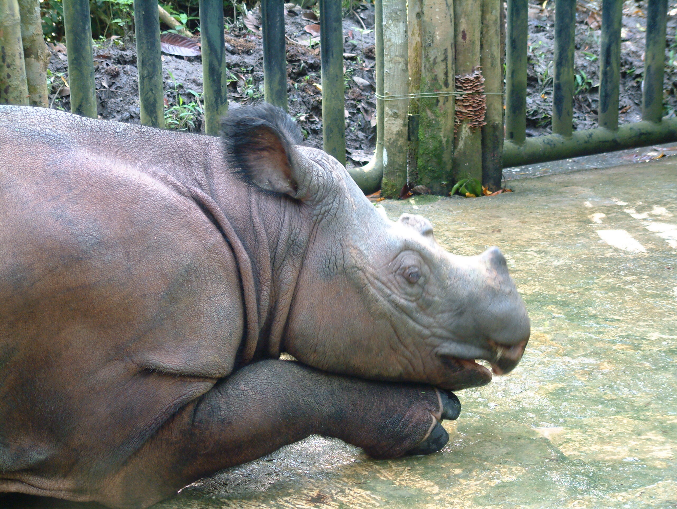 Bina SRS Bina, a female Sumatran Rhino, in her night pen in the Sumatran Rhino Sancturay (SRS) in Way Kambas National Park, Sumatra.