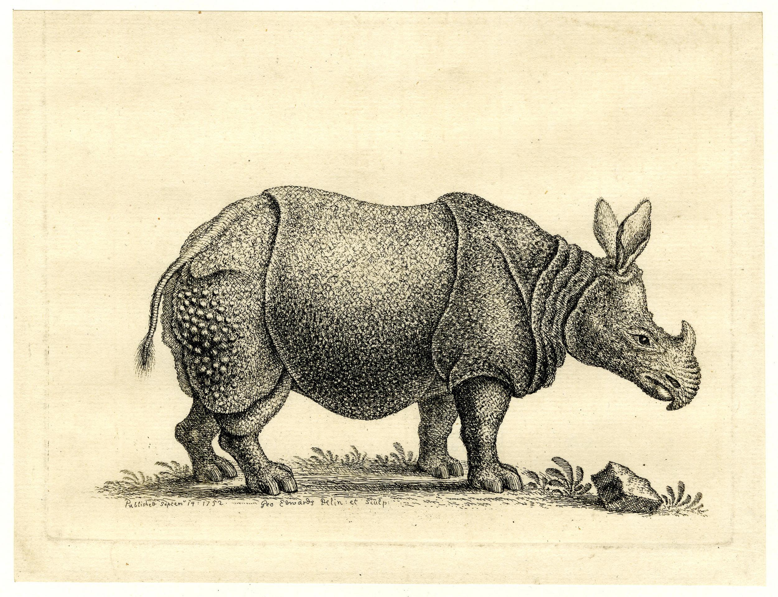 Sketch by George Edwards (1694-1773) of a rhinoceros in London in 1752.
