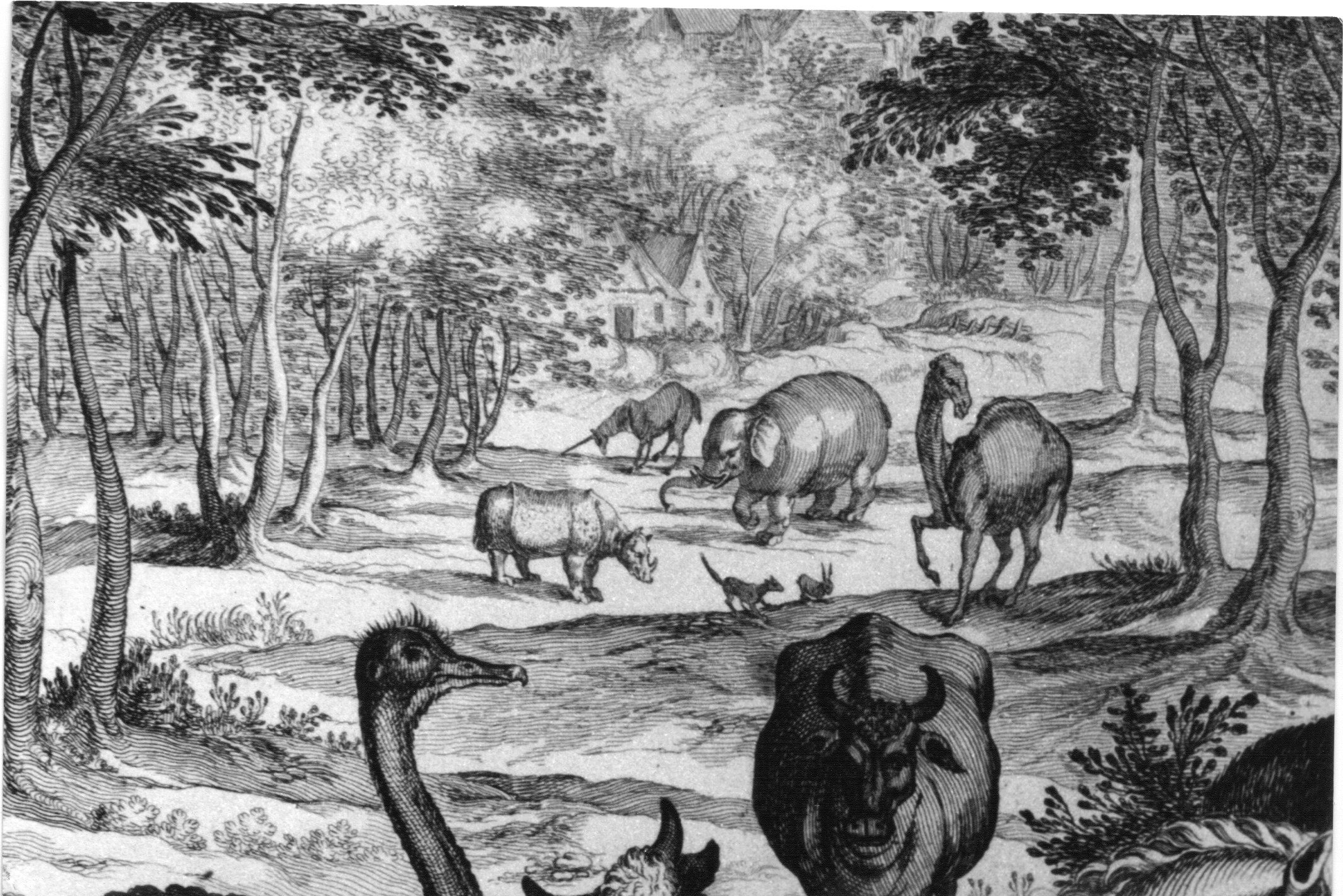 Detail of an engraving “Orpheus Enchanting the animals” by Simon Wynouts Frisius (1580-1629) after Joos van Goemare, dated 1618. Museum Boymans van Beuningen, Rotterdam.