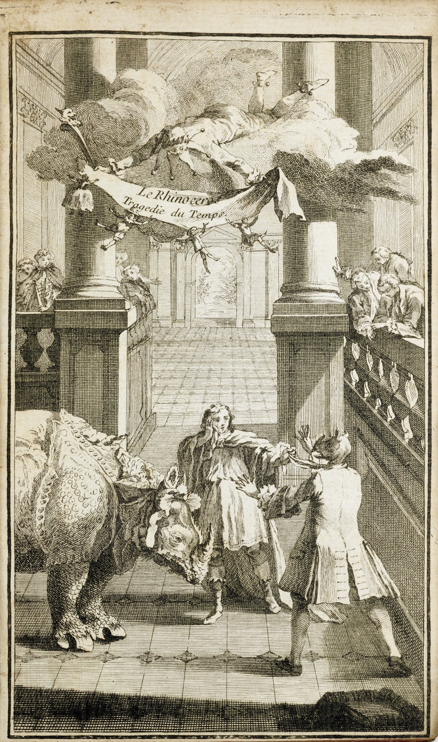 Frontispiece of Guiard de Servigne, J.B., 1750. Le rhinoceros, poeme en prose divise en six chants, par M.elle de ***. Paris