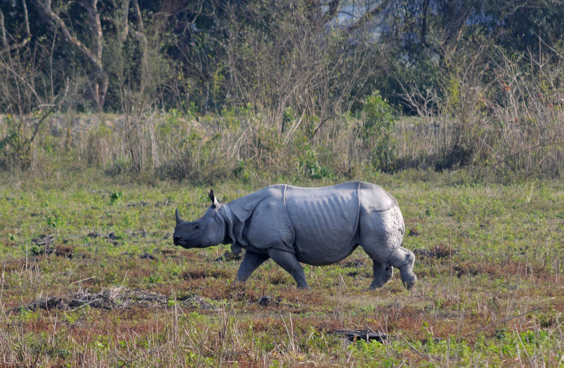 Indian Rhino (Rhinoceros unicornis) single animal at Kaziranga National Park, Assam, India, on 2008-02-29. Photo taken by Jürg Völlm †, Basel. Photo provided by Peter Dollinger, Bern.
