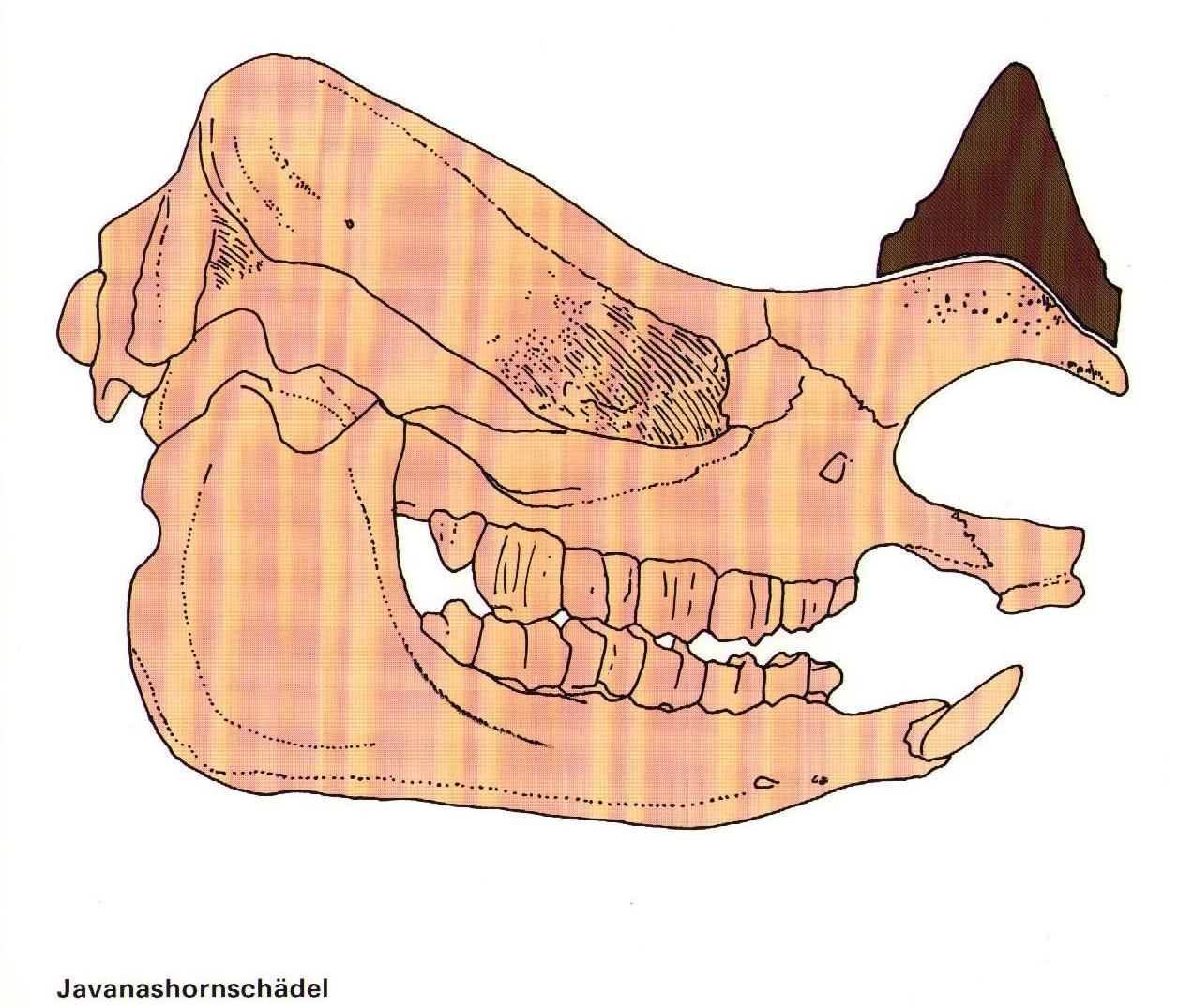 Javan rhino skull Skull of Javanashorn, Rhinoceros sondaicus.Lang, E.M.; Schenkel, R.; Schaefer, H.; Meyer, H. 1989. Nashoerner. Basel, p. 12