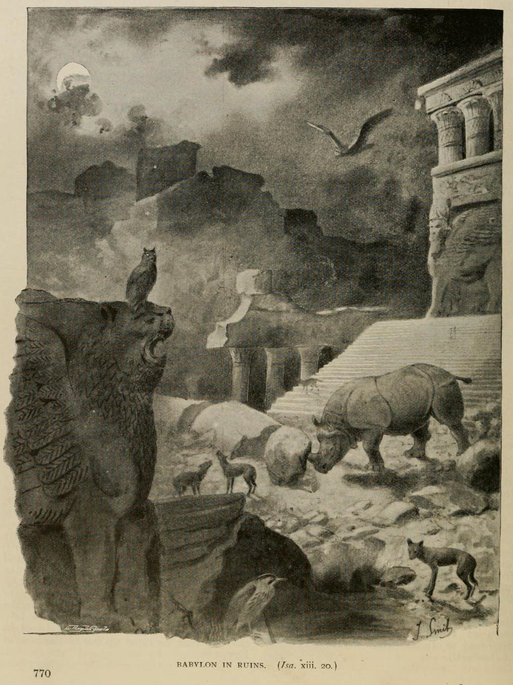 Babylon in ruins. Scene in an illustrated Bible: Newnes, G. 1896. The art Bible, comprising the Old and new Testaments: with numerous illustrations. Isiah. London, George Newnes.