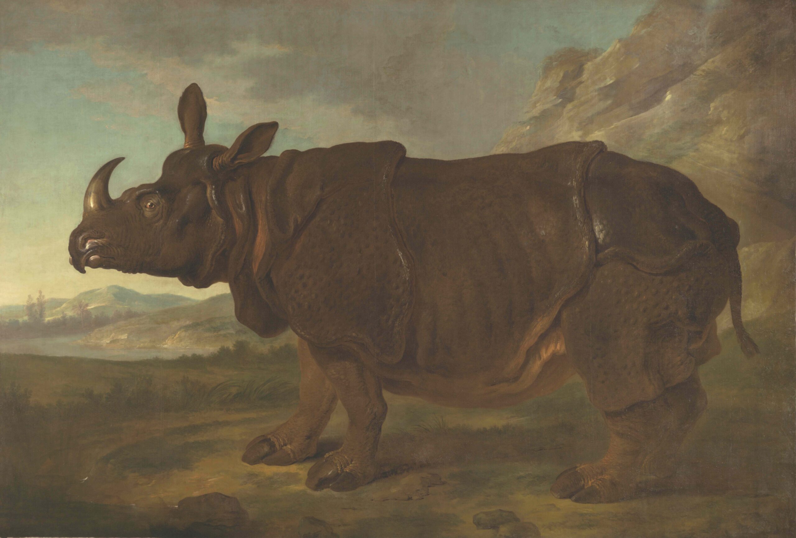 Painting of rhinoceros by Jean-Baptiste Oudry (1686-1755) 1749. Oil on canvas, 306 x 453 cm. Staatliches Museum, Schwerin, Germany