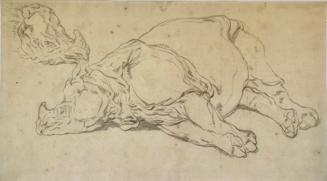 Sketch of Clara, the Dutch rhinoceros in Augsburg in 1748 by Johann Elias Ridinger (1698-1767)