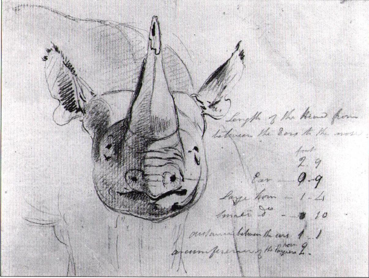 Samuel Daniell (1775-1811). Sketch of black rhinoceros, probably the male shot at Cossefontein (Koussie, Kossy) on 27 Dec 1801.