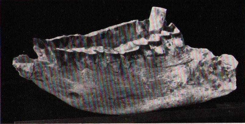 Mandible of a skull of Diceros bicornis found near Kolmanskuppe in the region behind Luderitz, Namibia. Museum Lüderitz, Namibia, no number