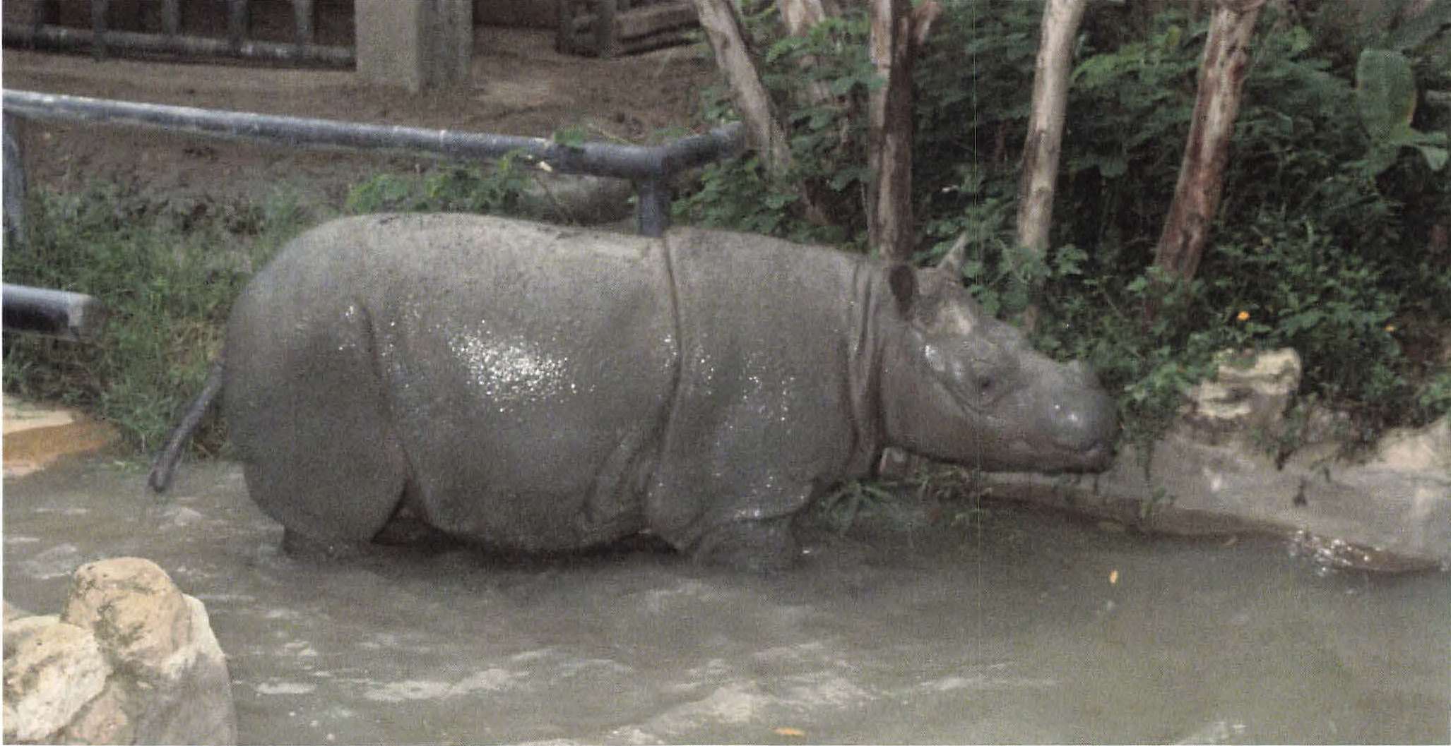 Female Sumatran rhinoceros caught in Melintang Forest, Malaysia, after which she was exhibited in Melaka Zoo from 18 April 1985 to July 186 with the name Melintang (studbook no. 3). She was donated to King Bhumipol of Thailand, and exhibited in the Dusit Zoo in Bangkok, until her death on 23 November 1986, with the new name Linchong (meaning Flower).